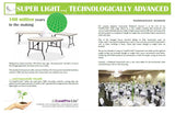 Unique, high technology, recycled fibreboard honeycomb core which is up to 50% lighter than other banquet tables.
