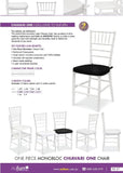 Low maintenance and stylish option for weddings, functions and catering events, hotels and wineries. Comfortably stacks up to 10 chairs. Includes both black and white cushion. ONE Piece, ONE Choice.